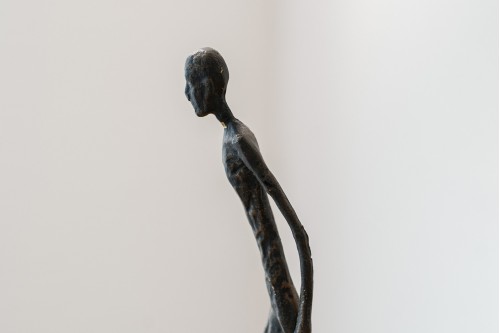 SCULPTURE ON THE MOVE. MADE OF METAL AND MARBLE. THIS SCULPTURE REPRESENTS A HUMAN FIGURE IN MOTION WALKING TOWARDS ITS DESTINATION. THE METAL HAS BEEN FINISHED IN AGED BRONZE AND THE BASE IS MADE OF EARTH-TONED MARBLE WITH WHITE AND GARNET VEINS.-AS THIS PIECE USES NATURAL STONES AND HANDCRAFTED FINISHES THERE MAY BE VARIATIONS BETWEEN INDIVIDUAL PIECES AS WELL AS POROSITY IN THE MARBLE AND VEINS OF DIFFERENT SHADES. THESE FEATURES ENHANCE THE NATURAL CHARACTER OF THE PIECES AND MAKE THEM UNIQUE.-BASE SIZE: 16x6x4 C