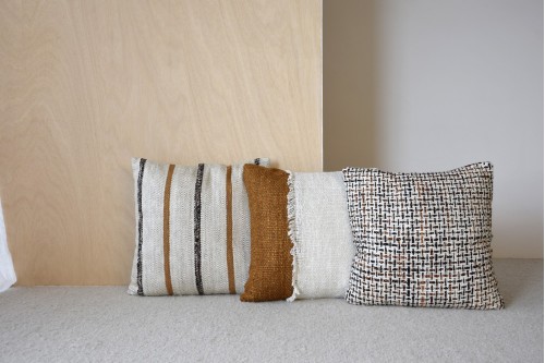 COJÍN COLECCIÓN LAZA N.5. FUNDA CON PATRÓN SIMILAR A CUADRÍCULA EN TONOS MOSTAZA OCRES TOQUES DE NEGRO SOBRE FONDO BLANCO ROTO REALIZADA EN ALGODÓN 100%. RELLENO DE FIBRA INCLUIDO. CIERRE CON CREMALLERA EN LA PARTE POSTERIOR. LIMPIEZA EN SECO