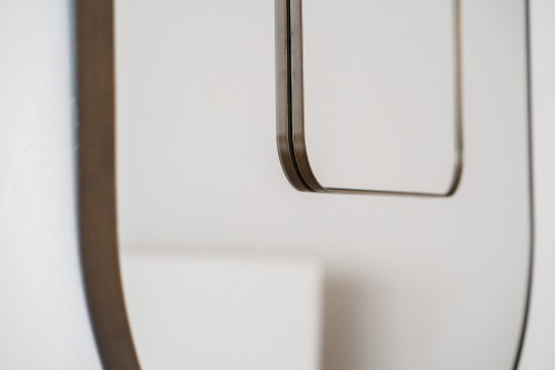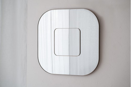 ESTE ESPEJO DE PARED DESTACA POR SU COMPOSICIÓN EN DOS NIVELES QUE COMBINA EQUILIBRIO VISUAL Y UNA ESTÉTICA CUIDADA. LA BASE ES UN ESPEJO CUADRADO DE GENEROSAS DIMENSIONES CON BORDES SUAVEMENTE CURVADOS QUE APORTAN SENSACIÓN DE FLUIDEZ Y MODERNIDAD. SUPERPUESTO EN EL CENTRO SE INTEGRA UN SEGUNDO ESPEJO DE MENOR TAMAÑO CON EL MISMO DISEÑO FORMAL Y TAMBIÉN ENMARCADO EN METAL ACABADO ORO ENVEJECIDO. LA ESTRUCTURA DOBLE CREA PROFUNDIDAD Y VOLUMEN TRANSFORMANDO UNA PIEZA FUNCIONAL EN UN ELEMENTO DECORATIVO CON GRAN CARACTER. IDEAL COMO PUNTO FOCAL EN PROYECTOS DE DISEÑO CONTRATC Y RETAIL.