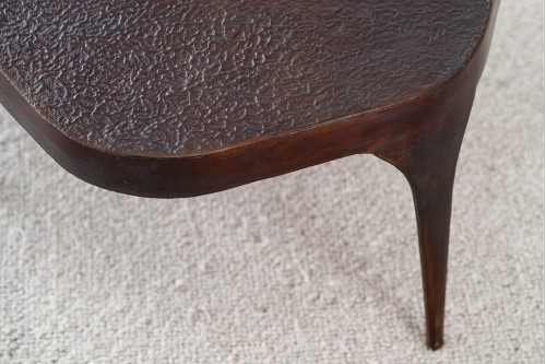 CONJUNTO DE DOS MESAS DE CENTRO ELABORADAS EN METAL Y TERMINADAS CON UN ACABADO EFECTO ÓXIDO. ESTAS MESAS COMBINAN UN DISEÑO ORGÁNICO CONTEMPORÁNEO CON UNA TEXTURA ÚNICA QUE RESALTA EN CUALQUIER AMBIENTE. CON SU FORMA IRREGULAR DE LÍNEAS SUAVES Y ESTILO ESCULTÓRICO ESTAS MESAS SON IDEALES PARA ESPACIOS QUE BUSCAN UN EQUILIBRIO ENTRE LO ARTÍSTICO Y LO FUNCIONAL. SU PRESENCIA ROBUTSA PERO REFINADA LAS CONVIERTE EN PIEZAS PROTAGONISTAS EN LIVINGS LOBBIES O ESPACIOS COMERCIALES. PUEDE HABER VARIACIONES DE COLOR Y TEXTURA DE UNAS PEIZAS A OTRAS.