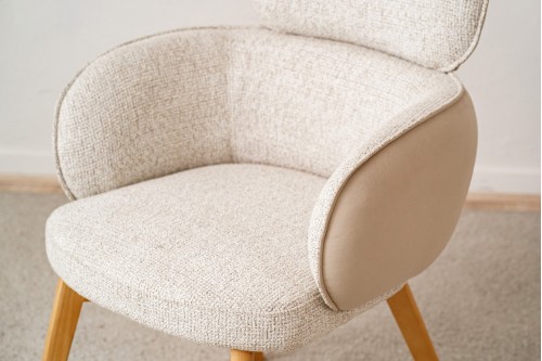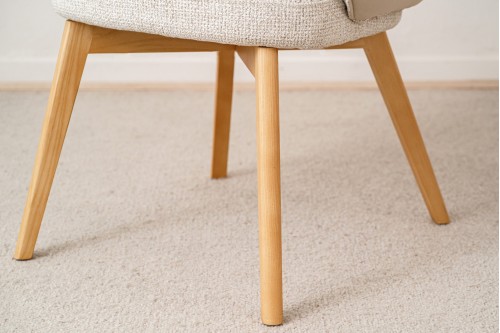 LOT DE 2 CHAISES DE SALLE À MANGER ALDEN AVEC ACCOUDOIRS. ELLES SONT TAPISSÉES D’UN TISSU TEXTURÉ DANS DES TONS PIERRE ASSOCIÉ À UN VELOURS DE LA MÊME TEINTE À L’ARRIÈRE DE LA CHAISE. LA CHAISE ALDEN EST UNE PIÈCE AUX LIGNES DOUCES ET À LA FORME ENVELOPPANTE QUI INVITE À S’INSTALLER ET À PROFITER DE LONGUES CONVERSATIONS APRÈS LE REPAS. LES PIEDS SONT EN BOIS DE CHÊNE MASSIF AVEC UNE FINITION NATURELLE.
