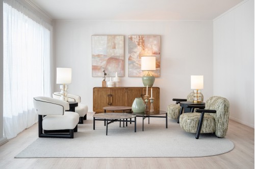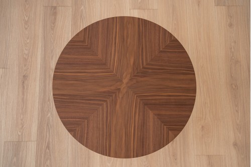 TABLE BASSE RONDE EN PANNEAU DM PLAQUÉ NOYER ET STRUCTURE EN MÉTAL NOIR MAT. SON PLATEAU EN NOYER DISPOSÉ DE MANIÈRE RADIALE LUI CONFÈRE UNE ESTHÉTIQUE SOIGNÉE ET MODERNE IDÉALE DANS DIFFÉRENTS ENVIRONNEMENTS. LES PIEDS EN MÉTAL FINITION NOIR MAT GARANTISSENT UN DESIGN STYLISÉ QUI S-ADAPTE À TOUTE DÉCORATION. CE MODÈLE FAIT PARTIE D-UN ENSEMBLE DE TROIS TABLES DE DIFFÉRENTES HAUTEURS QUI MÉLANGENT LE NOYER AVEC DU VERRE TEXTURÉ EN AMBRE ET EN CÉRAMIQ