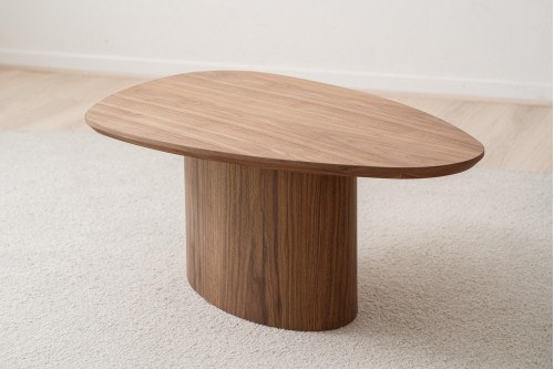 TABLE BASSES DE FORME ORGANIQUE EN MDF AVEC FINITION EN PLACAGE DE BOIS NATUREL DE NOYER. LA BASE CENTRALE EST DE FORME OVALE ET SUPPORTE LE PLATEAU CONFÉRANT UNE CERTAINE LÉGÈRETÉ À L-ENSEMBLE. PARFAITE POUR ÊTRE ASSORTIE À UNETABLE DE DESIGN SIMILAIRE ET DE FINITION CÉRAMIQUE CRÉANT UN JEU DE FORMES IRRÉGULIÈRES SUPERPOSÉES. LES TEINTES ET LES MOTIFS UTILISÉS DANS LES MATÉRIAUX PEUVENT VARIER D-UNE PIÈCE À L-AUTRE.